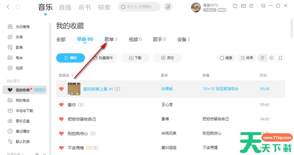 5.然后直接点击上方的【歌单】选项,如图所示。