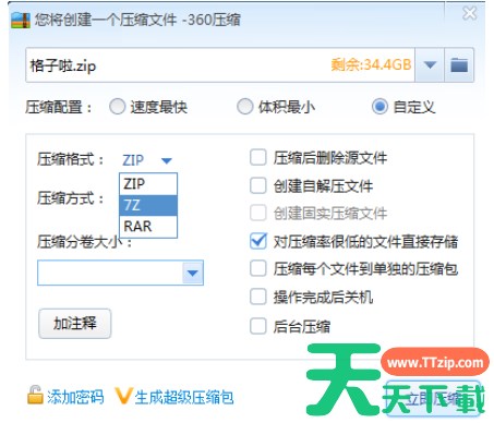 选择一个压缩文件,进入到压缩条件的设置里面。