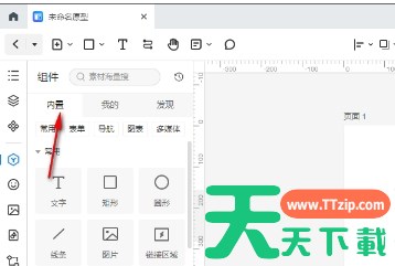 在左侧的组件库中选择“内置”选项。找到“按钮”组件并将其拖动到右侧的画布上添加按钮组件。
