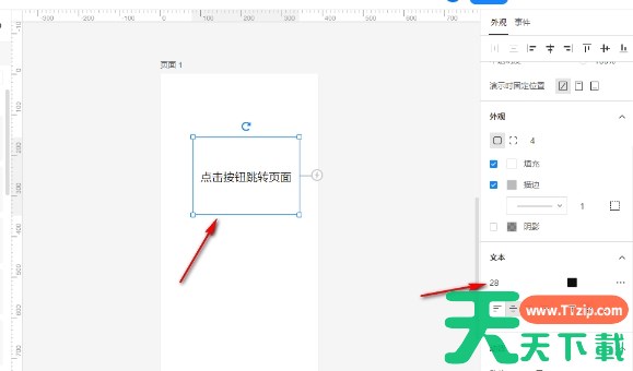 在右侧的外观设置窗口中,调整按钮的样式(如文字大小、颜色等)。