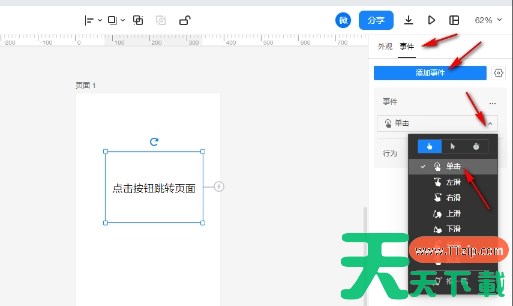 点击右侧的“事件”选项。点击“添加事件”并选择“单击”作为触发事件。