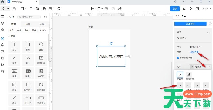 在事件的行为设置中,选择“跳转页面”。点击“选择页面”并选择要跳转到的目标页面。