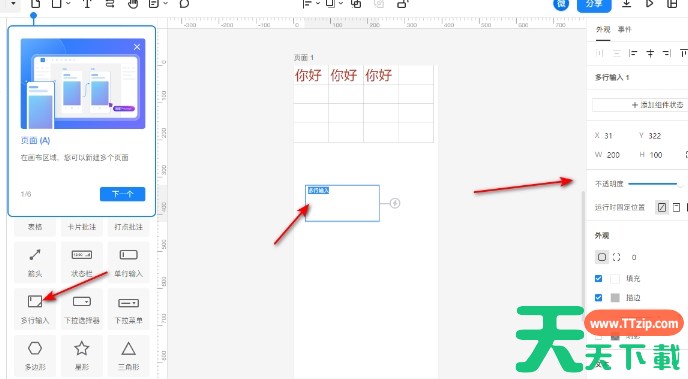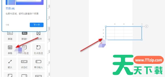 在新建的页面中,双击左侧的【表格】选项,在空白页面中插入表格,并添加和设置文字内容。也可以双击左侧的【多行输入】按钮,在页面中插入文本框,输入文字并进行编辑和设置。