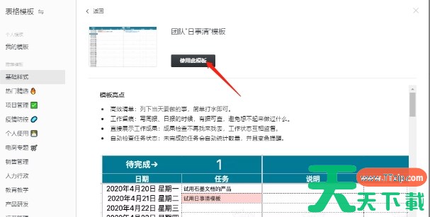 如果选择了模板,点击【使用此模板】开始编辑。在表格编辑页面,使用各种编辑工具进行编辑。