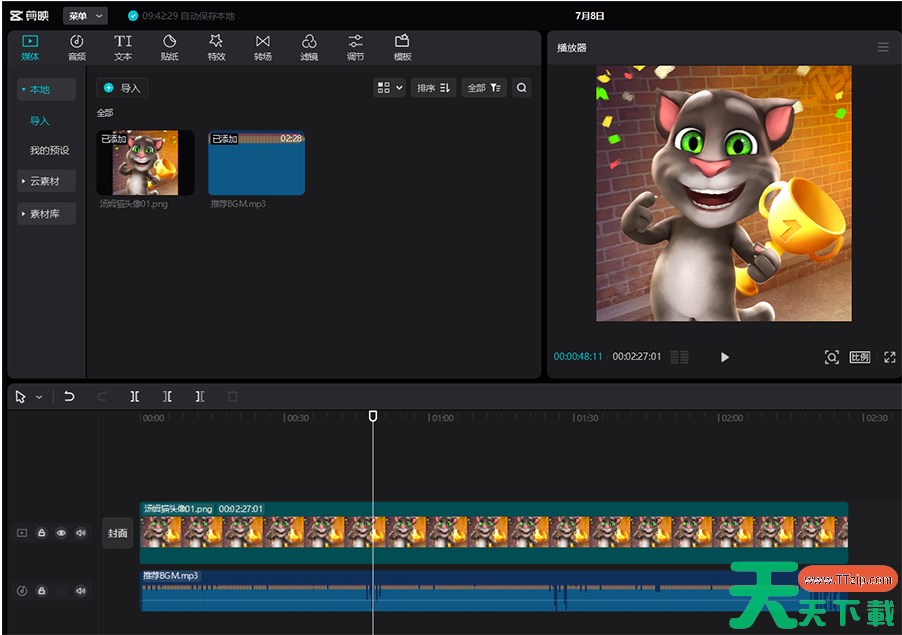 首先我们必须把MP3格式的音频文件转换成MP4格式的视频文件。我们随便找一张小图片,把它和MP3音频文件一起拉入剪映中。