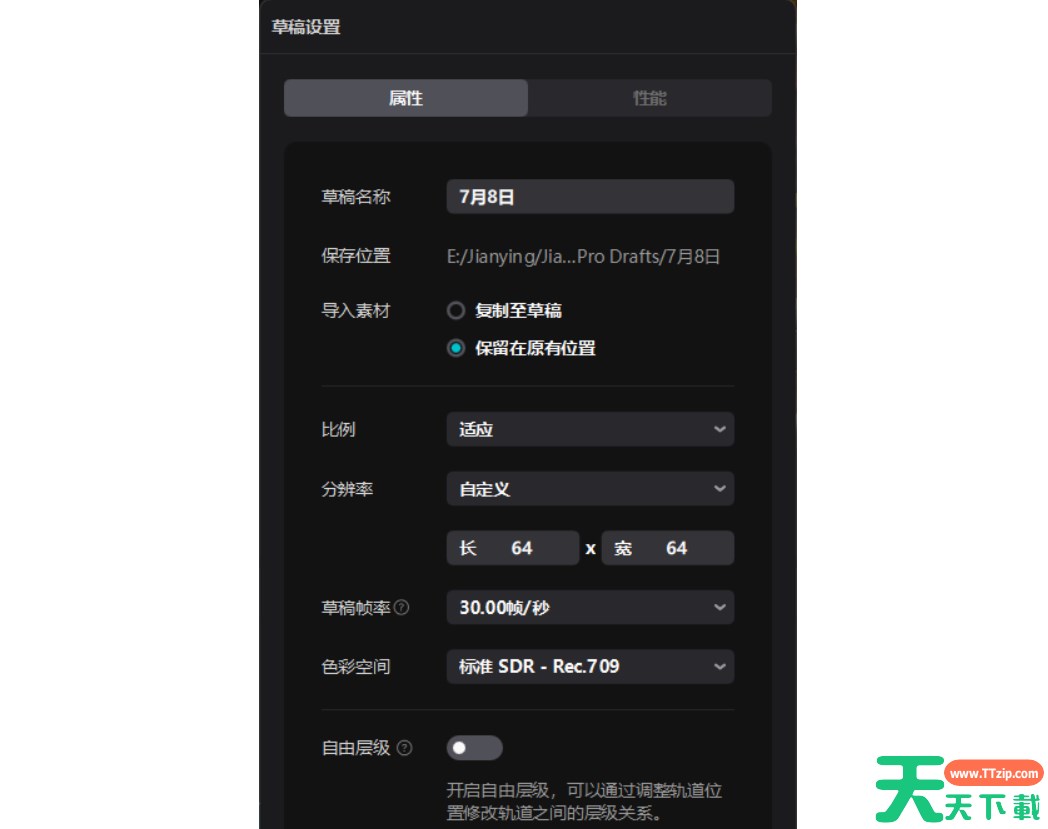将图片和音频的轨道长度对齐,这属于视频剪辑的基本操作,我就不多说了。然后修改视频尺寸,选择自定义,改成最小,剪映允许的最小尺寸是64:64。