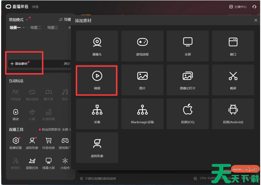 改好之后导出视频。然后打开抖音直播伴侣,点击左边“添加素材”,在弹出框中选择“视频”。