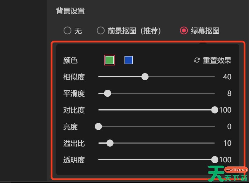 1.颜色:可以选择扣除绿色背景 或者 蓝色背景