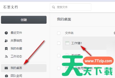打开石墨文档,然后在页面左上方点击“我的桌面”选项。