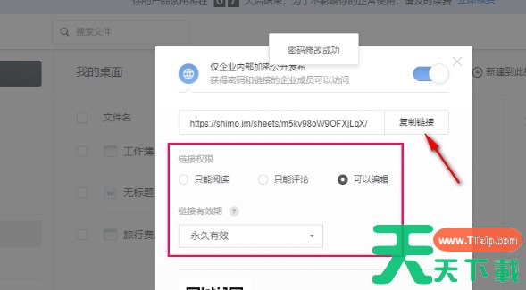 设置完成后,点击“复制链接”按钮,将链接复制到剪贴板中。发送给其他人即可。