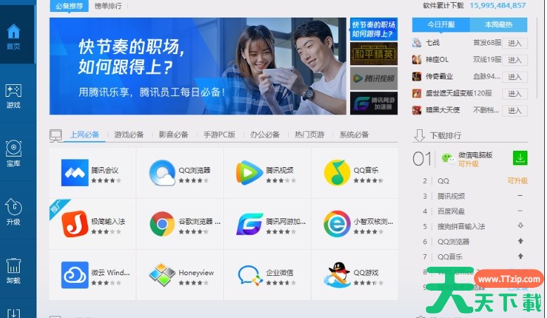 腾讯电脑管家是一款功能全面的电脑安全防护和管理软件,由腾讯公司精心打造,致力于为用户提供全方位、高效便捷的安全保护。腾讯电脑管家具备强大的病毒查杀能力,采用腾讯自主研发的反病毒引擎“鹰眼”以及腾讯安全云库,能够实时更新病毒库,有效查杀各类计算机病毒、木马、蠕虫等恶意软件,保护用户电脑免受病毒侵害。内置一键清理功能,能够智能扫描并清理系统中的垃圾文件、无用注册表项、浏览器缓存等,释放磁盘空间,提升电脑性能。接下来就让天天下载Ttzip为大家解答一下腾讯电脑管家怎么重装系统以及腾讯电脑管家重装系统的方法吧!