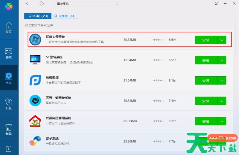 在搜索结果中,你将找到不少重装系统的软件或工具。从弹出的软件列表中,选择并下载你中意的“重装系统软件。