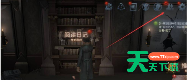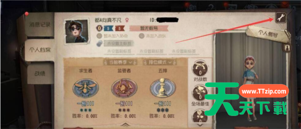 1、玩家打开第五人格游戏后,点击右上角进入个人主页。