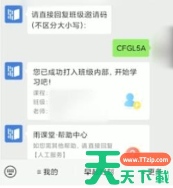 雨课堂让教与学释放更多能量,成就更多的老师与学生,在娱乐中学习,在学习中娱乐。那么雨课堂怎么签到?雨课堂签到的方法?下面就让天天下载Ttzip给大家解答下吧! 雨课堂怎么签到? 1、打开微信,搜索并找到雨课堂公众号,在公众号中找到对应的课程或课堂,点击进入。 2、记下当堂发出的课堂暗号,直接在对话框输入课堂暗号即可进入课堂,进入课堂即视为签到成功。 以上就是天天下载Ttzip为您整理的雨课堂怎么签到?雨课堂签的操作流程啦,希望能帮到您。 除特别注明外,本站所有文章均为 天天下载 原创,转载请注明出处来自 https://www.ttzip.com/211967.html