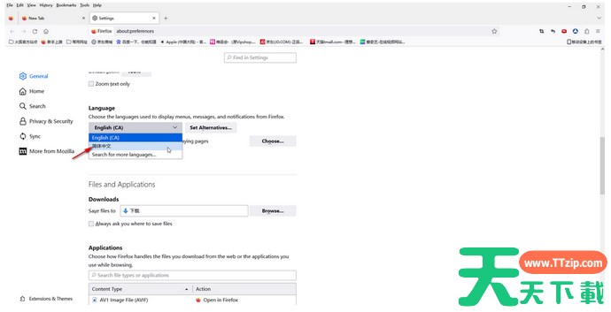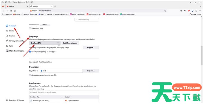 第三步:在新页面左侧点击切换到“general”(常规),然后往下滑动找到“language”(语言)栏,点击如图所示的语言处的下拉箭头;