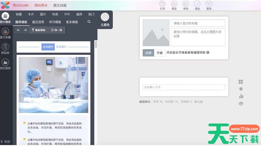 秀米编辑器是一款非常实用的文字编辑软件,尤其在公众号内容制作方面,它展现出了卓越的性能和便捷性。秀米编辑器上手操作简单,无需专业的编程技术,用户只需通过直观的拖拽操作,就能轻松创建出个性化的排版作品。这种操作方式大大降低了使用的门槛,使得更多人能够轻松利用秀米编辑器进行内容创作。接下来就让天天下载Ttzip为大家解答一些秀米编辑器怎么导入链接以及秀米编辑器导入链接的方法吧!