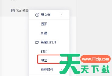 双击“我的资源”文件夹,以显示其中的文件。右键点击需要导出的文件,选择“导出”选项。