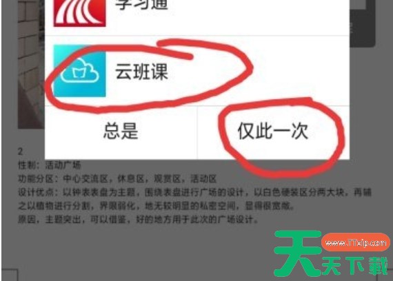 2、在弹出的页面中找到并点击“云班课”应用,然后点击“仅此一次”。
