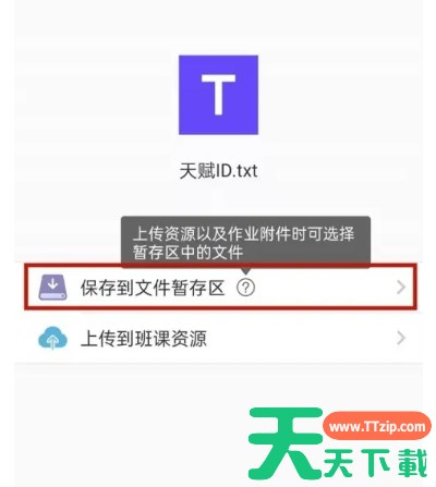 3、在云班课应用中,找到并点击“保存到文件暂存区”的选项,这样就可以将文件保存到云班课的文件暂存区了。