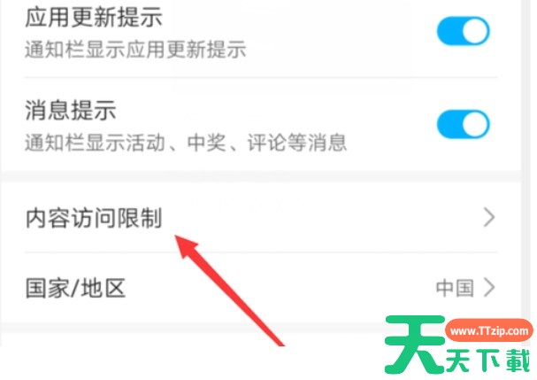 在设置页面中,用户需要找到并点击“内容访问限制”选项。这个选项用于限制特定年龄段以下的用户访问某些类型的内容,以确保他们只能接触到适合他们年龄的应用和游戏。