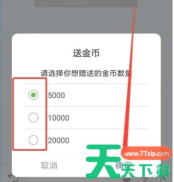 在弹出的选项中,选择“送金币”。需要选择想要赠送的金币数量。请注意,赠送和接收金币的每日额度有限制,超出这个限制你就不能继续赠送或接收金币了。