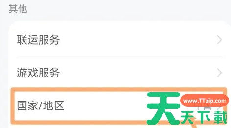 进入“设置”页面后,继续找到并点击“国家/地区”选项。
