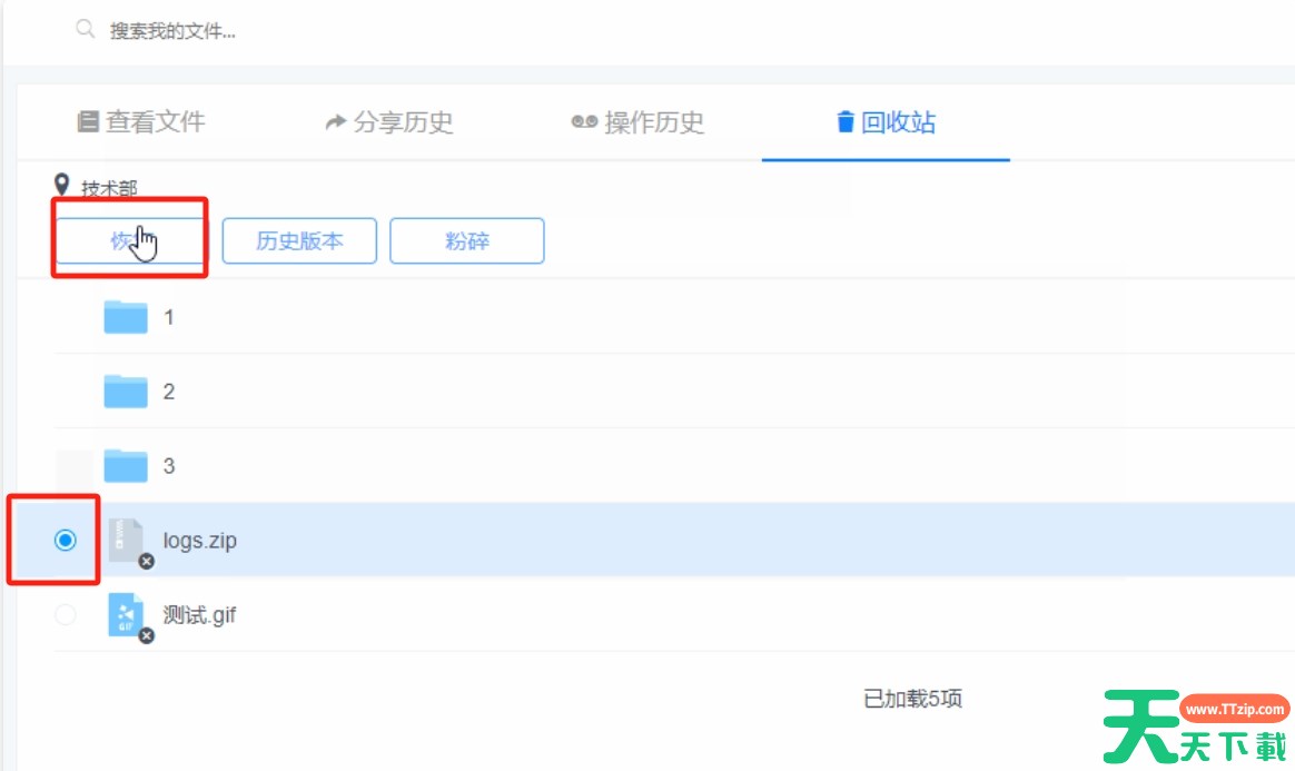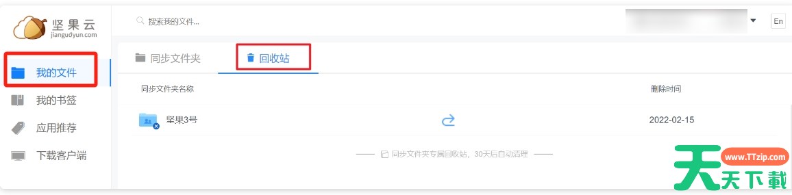 坚果云是一款安全、高效的云存储服务,如果您的文件不小心被删除,坚果云可以帮助您轻松恢复。那么坚果云怎么恢复删除的文件?坚果云恢复删除的文件的方法?下面就让天天下载Ttzip给大家解答下吧! 坚果云怎么恢复删除的文件? 1、登录坚果云软件,点击“我的文件”然后再点击“回收站”选项。 2、然后再点一下“回收站”选项,在回收站中,可以看到所有被删除的文件。 3、找到需要恢复的文件,并点击它,再点击“恢复”按钮。 4、文件就会被恢复到云盘中,并自动同步到本地文件夹中。 以上就是天天下载Ttzip为您整理的坚果云怎么恢复删除的文件?坚果云恢复删除的文件的操作流程啦,希望能帮到您。 除特别注明外,本站所有文章均为 天天下载 原创,转载请注明出处来自 https://www.ttzip.com/212052.html