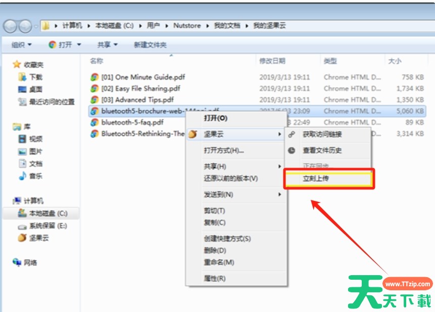 坚果云是一款,通过文件自动同步、共享、备份功能,为用户实现智能文件管理,提供高效办公解决方案。那么坚果云怎么上传文件?坚果云上传文件的方法?下面就让天天下载Ttzip给大家解答下吧! 坚果云怎么上传文件? 1、在坚果云的“查看文件”界面中,可以看到“立即上传”按钮。 2、点击“上传”按钮后,选择要上传的文件或文件夹,点击确定进行上传。 以上就是天天下载Ttzip为您整理的坚果云怎么上传文件?坚果云上传文件的操作流程啦,希望能帮到您。 除特别注明外,本站所有文章均为 天天下载 原创,转载请注明出处来自 https://www.ttzip.com/212059.html