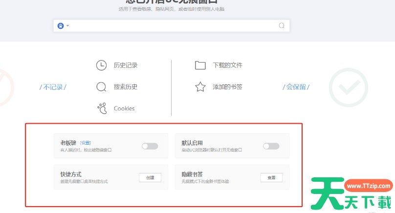 以上就是天天下载Ttzip为你整理的uc浏览器怎么设置无痕模式以及uc浏览器设置无痕模式的方法啦,希望能帮到您!