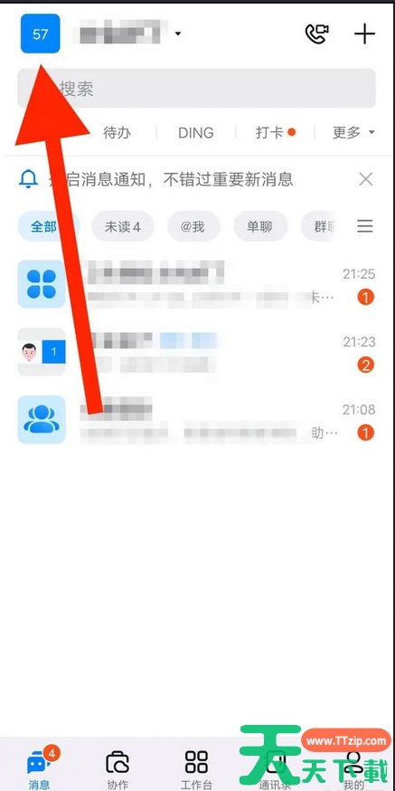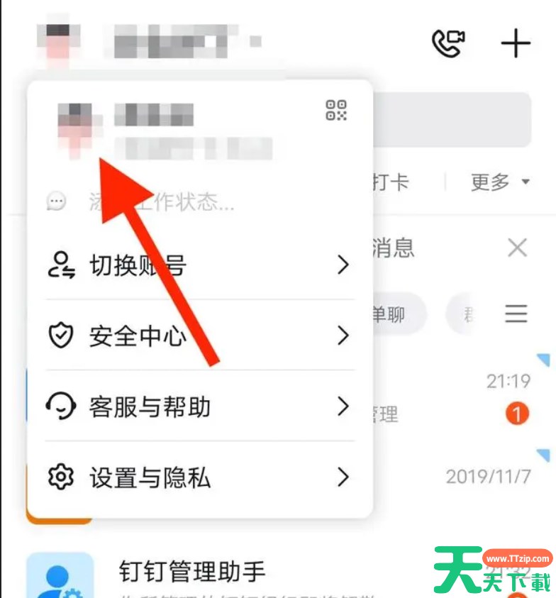 第一步:进入钉钉软件,点击左上角的头像标志。