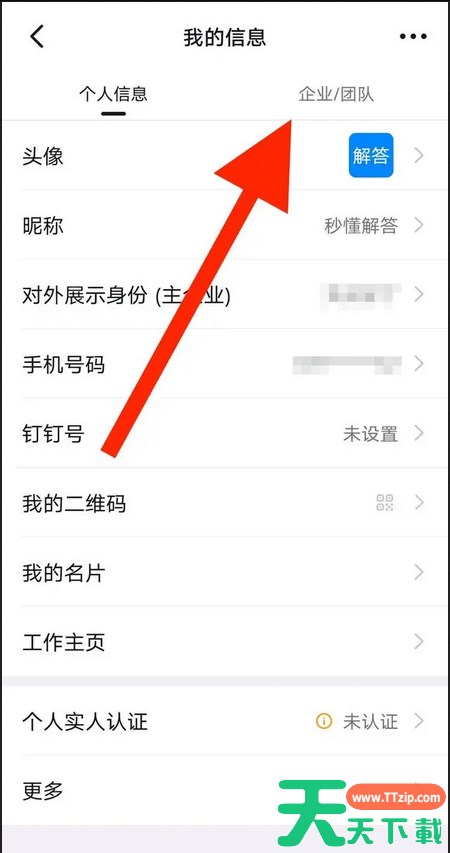 第三步:进入我的信息界面,点击企业/团队选项。