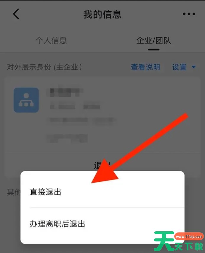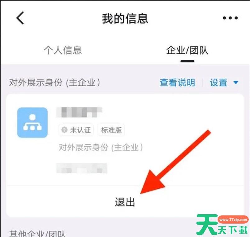 第四步:在企业/团队页面,点击下方的退出按钮。