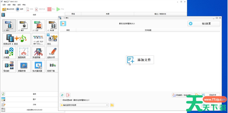 第一步:双击打开格式工厂,点击展开“视频”栏,点击选择需要的视频格式,然后点击“添加文件”按钮导入视频;