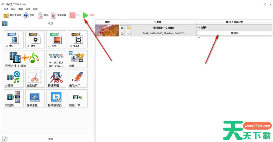 第四步:可以看到“等待中”的状态,在右下角可以点击勾选“完成通知”,然后点击“开始”并等待一会儿就可以了;