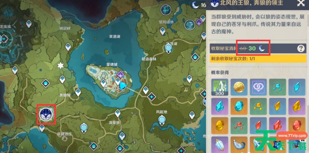 3、新手期等级太低所以不推荐打圣遗物本,但是体力最好还是消耗点,比如打一下藏金之花或者北风狼王之类的周本boss。