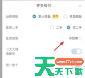 在更多信息填写页面,找到“更多服务”选项并点击。默认情况下可能是“非预售”选项,需要将其更改为预售设置。从下拉选项中选择“时段预售”,表示商品将按照预定的时间段进行预售。