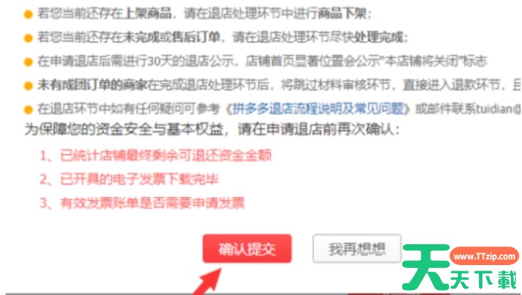 会出现退店提示,请仔细阅读后,点击“确认提交”。