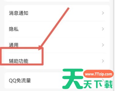 在QQ的设置页面中,您可以看到多个选项。请向下滚动或浏览,找到“辅助功能”这个选项。点击它,您将进入辅助功能的设置页面。