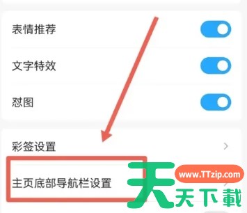 在辅助功能设置页面中,继续向下滚动,直到找到“主页底部导航栏设置”这个选项。