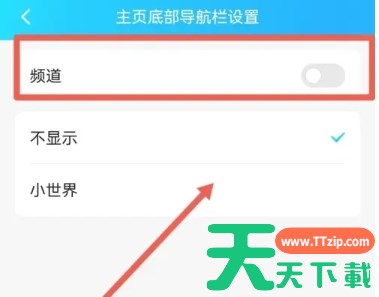 在导航栏的设置页面中,会看到多个导航栏选项,包括“频道”按钮。这个按钮的右侧通常有一个开关(或滑动条)。