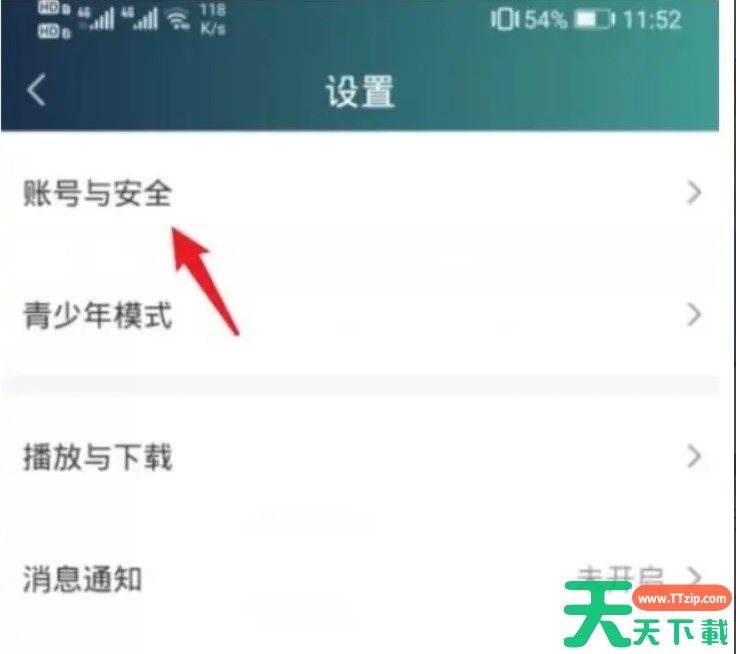 2、点击上方的账号与安全