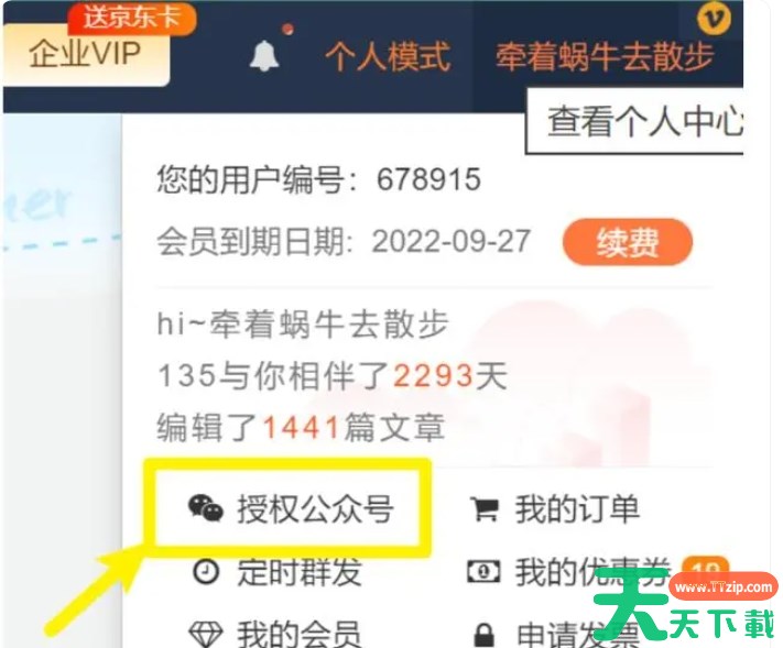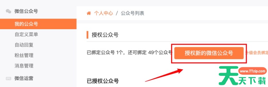 在个人中心中,用户需要找到并点击“授权公众号”这一选项。这一步骤是进入公众号授权设置界面的关键。