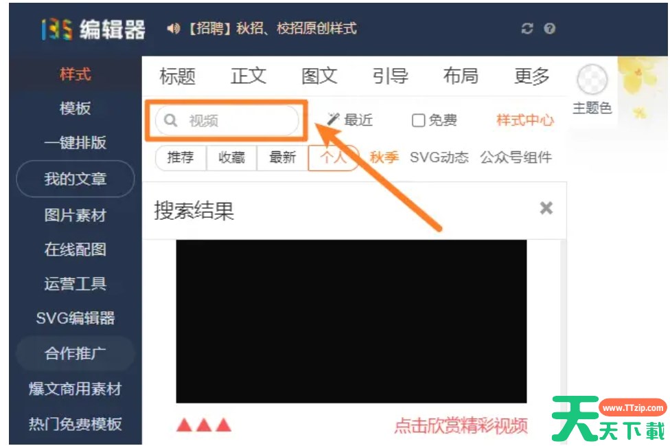 135编辑器是一款非常实用的在线图文排版编辑工具,由提子科技有限公司精心开发,并在图文排版和文字编辑等应用场景中得到了广泛应用,在这里用户可以自定义变换文章格式,满足个性化排版需求。这种灵活多变的功能设计使得135编辑器在众多排版软件中脱颖而出。操作界面简洁明了,易于上手。无论是新手还是经验丰富的编辑人员,都可以快速掌握其使用方法。接下来就让天天下载Ttzip为大家解答一下135编辑器怎么添加视频以及135编辑器添加视频步骤吧!