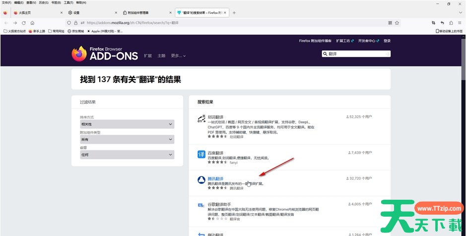 第四步:出现各种翻译插件,点击选择一个喜欢的,进入详情页面后点击添加到Firefox;