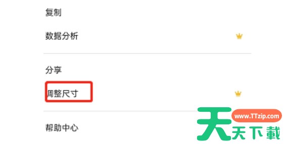 2、找到【调整尺寸】选项。