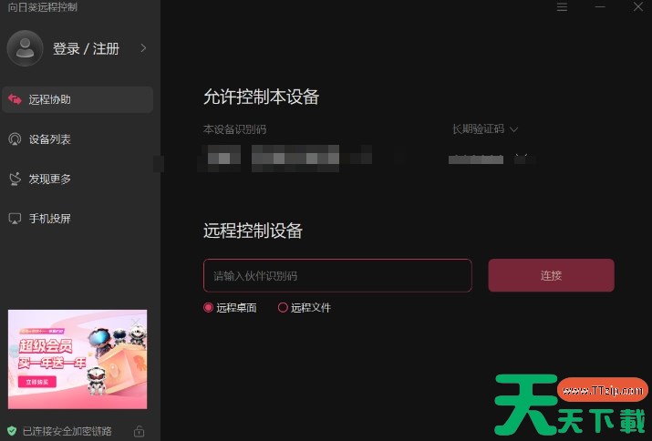 向日葵远程控制软件的界面简洁、操作简单,用户能轻松实现远程控制。那么向日葵远程怎么远程控制?向日葵远程控制的方法?下面就让天天下载Ttzip给大家解答下吧! 向日葵远程怎么远程控制? 1、首先双方都需下载安装向日葵远程控制软件,然后在设备列表中,选择您想要进行远程控制的设备。 2、点击“远程桌面”或“远程控制”按钮,输入需要控制电脑中的向日葵识别码和验证码软件将尝试建立远程连接,连接成功即可进行远程控制。 以上就是天天下载Ttzip为您整理的向日葵远程怎么远程控制?向日葵远程控制的操作流程啦,希望能帮到您。 除特别注明外,本站所有文章均为 天天下载 原创,转载请注明出处来自 https://www.ttzip.com/212346.html