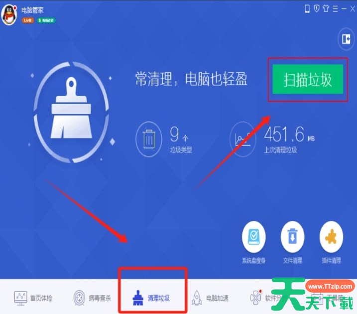 以上就是天天下载Ttzip为您整理的电脑管家怎么清理垃圾?电脑管家清理垃圾的操作流程啦,希望能帮到您。