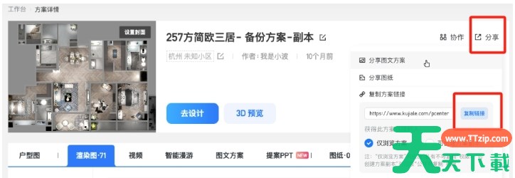 以上就是天天下载Ttzip为您整理的酷家乐怎么把方案发给别人?酷家乐把方案发给别人的操作流程啦,希望能帮到您。