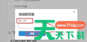 在打开的“添加新页面”窗口中,输入你想要设置为启动页面或新标签页的URL地址,然后点击“添加”按钮。