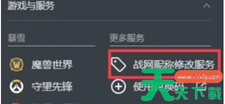 在“游戏与服务”页面中,查找并点击“战网昵称修改服务”。这个选项可能会以不同的方式呈现,但通常都与昵称修改相关。